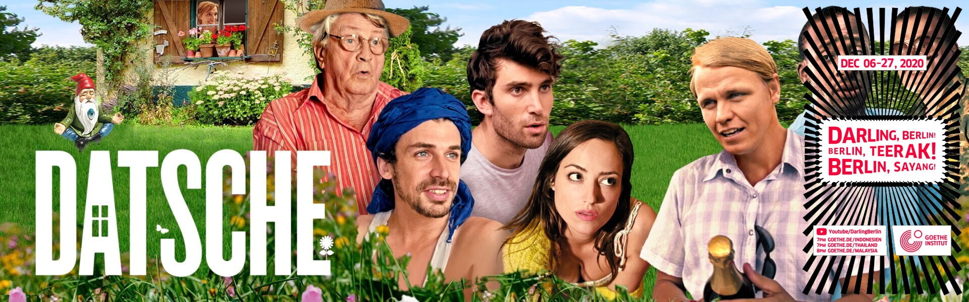 “Datsche” by Lara Hewitt is the name of the opening film of the first Darling, Berlin! Berlin, Sayang! Berlin, Teerak! online festival. The film is about the Valentine, an out-of-work New York actor, who travels across the Atlantic in order to discover his German roots and stay at the ‘datsche’ or summer cottage that he inherited from his grandfather. His neighbours in the East German garden allotment colony welcome him with open arms, a lot of curiosity and more rules than he can ever dream to remember. However, not everybody is foreigner-friendly …
