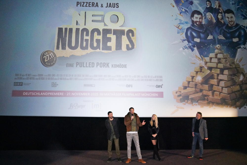 “Neo Nuggets – A Pulled Pork Comedy” celebrated its German theatrical release at the Mathäser Filmpalast in Munich with an atmospheric premiere on November 27. Numerous guests and fans experienced a humorous and action-packed evening in the presence of the two main actors Paul Pizzera and Otto Jaus as well as producer Loredana Rehekampff from Samsara Film in Vienna, who all traveled from Austria especially for the evening. Michael Müllner and Josef Brandmaier from the German production company Kodachrome were also present.